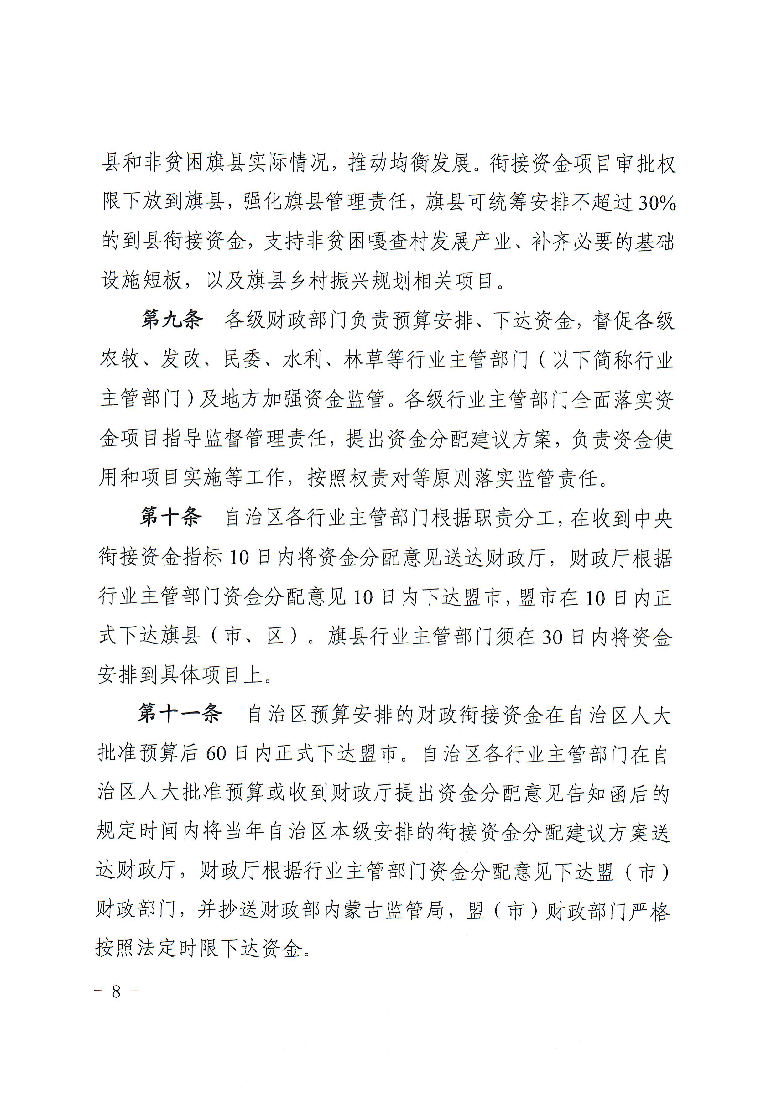 內蒙古自治區財政銜接推進鄉村振興補助資金管理辦法(修訂)