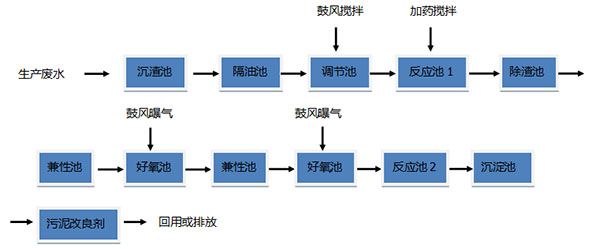 廢水→預處理→收集→預處理→(A/O)n生化處理→沉淀→達標排放